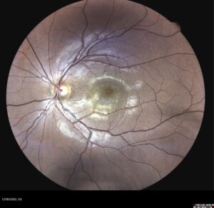 Le diagnostic repose sur un examen du fond d’œil et est confirmé par des examens d’imagerie essentiels comme l’OCT (Tomographie par Cohérence Optique) et l’angiographie à la fluorescéine.