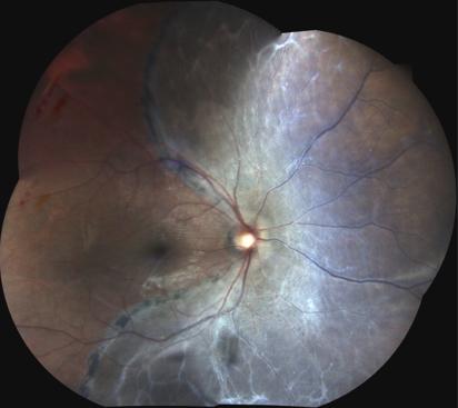 Il peut y avoir une baisse brutale de l’acuité visuelle périphérique avec une amputation sombre du champ visuel ou dans les cas les plus grave d’une perte totale de la vision lorsque la zone centrale de la rétine (la macula) se soulève.