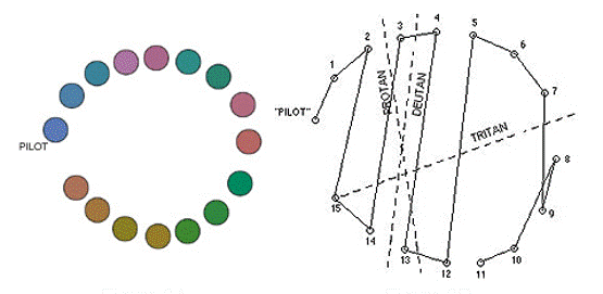 Les principaux sont le test d’Ishihara, le test de 15 Hue saturé et désaturé, le test de Farnsworth 100.